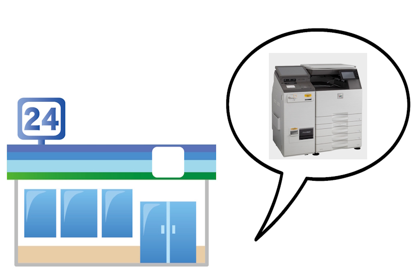 ローソン、ファミリーマート、ミニストップのマルチコピー機で出力が可能です。
