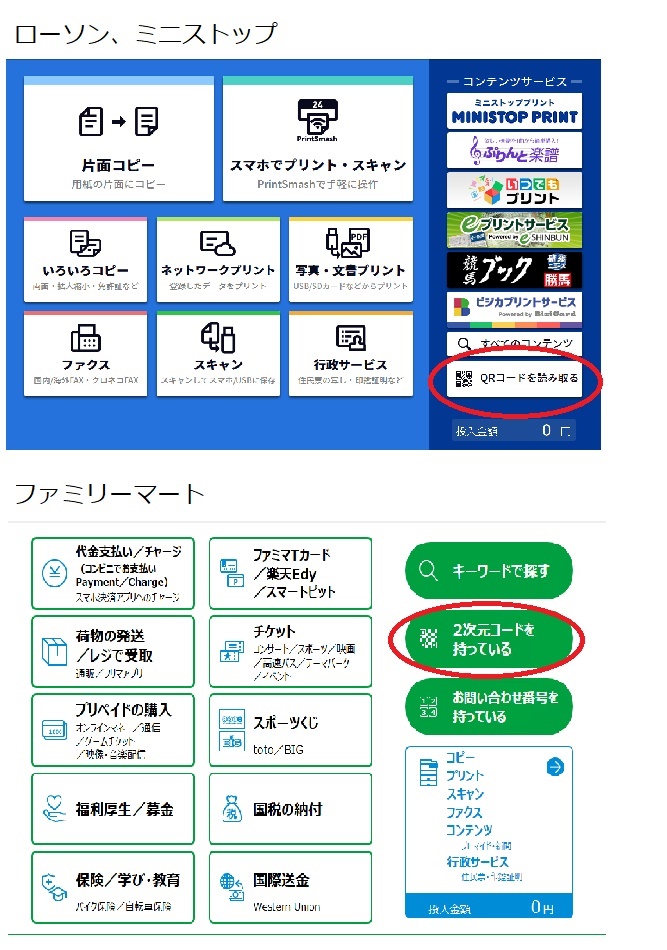 ローソン・ミニストップ:「QRコードを読み取る」