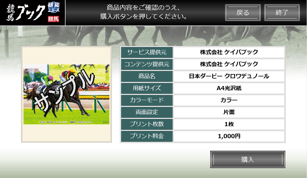 手順5:出力内容に誤りがないことを確認したら、「購入」を選択してください。