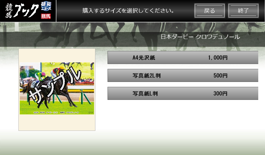 手順4:出力したいサイズを選び、次の画面へ進みます。