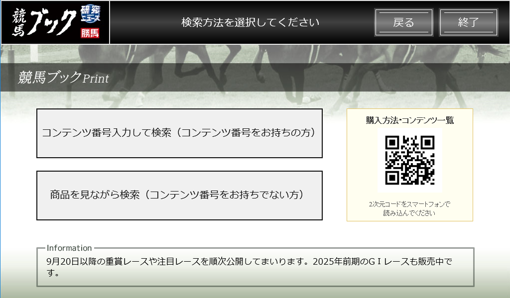 手順2:マルチコピー機のトップメニューから「競馬ブック」のロゴをクリックします。